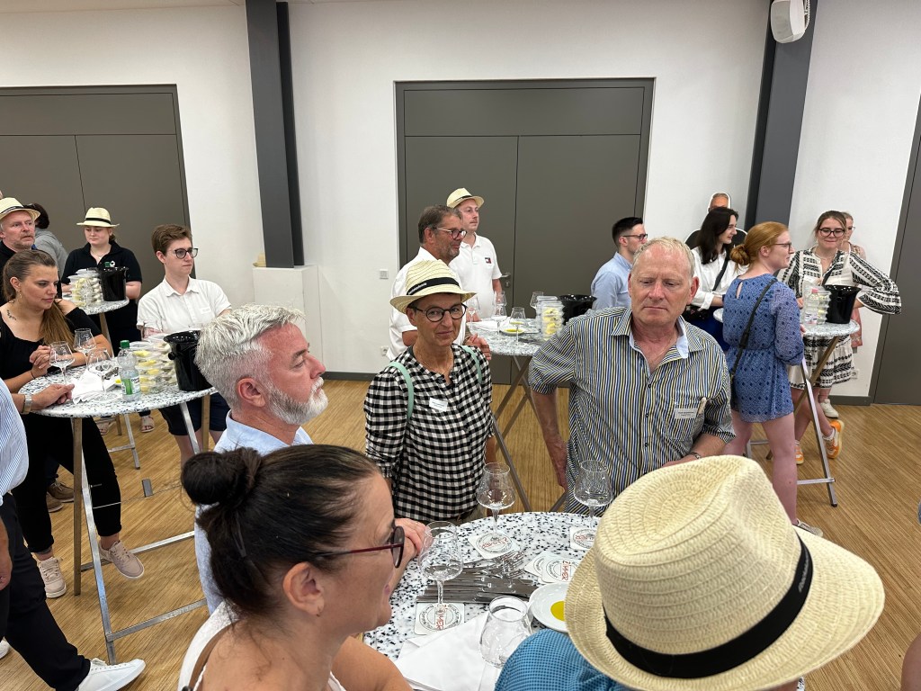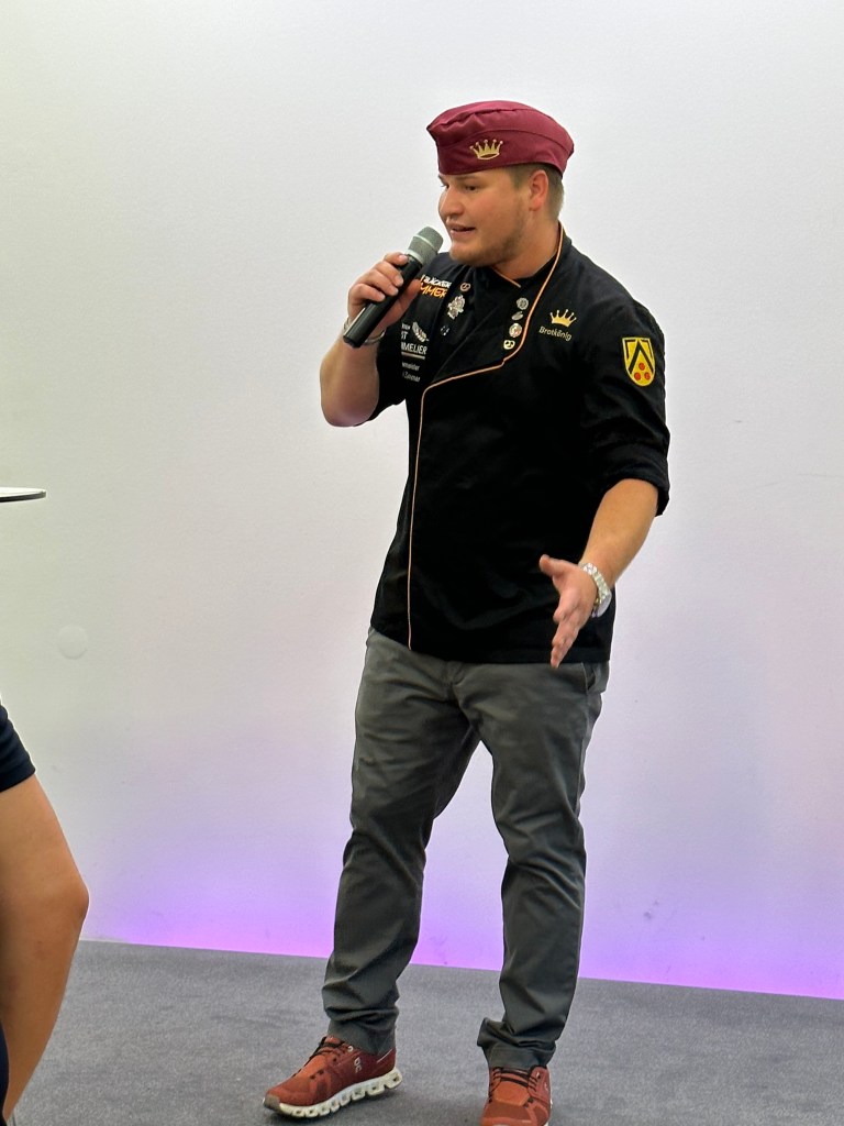 Mit einem Shuttlebus ging es vom Hotel aus dorthin – was schon mal ein cooler Service war. Nach einem lockeren „Cometogether“ der 250 Gäste und der Begrüßung durch Direktor Bernd Kütscher startete der 1. Programmpunkt: „Alle gegen Axel“. Dabei stellte sich kein geringerer als Weltbäcker 2022 Axel Schmitt gegen die gesamte Teilnehmerschaft. 20 Fragen rund ums Thema Brot & Backen mussten beantwortet werden, ganz „up to date“ über das Handy konnte mit gespielt werden. Am Ende gewann Axel mit 2 Punkten Vorsprung die große Magnum-Flasche Champagner.