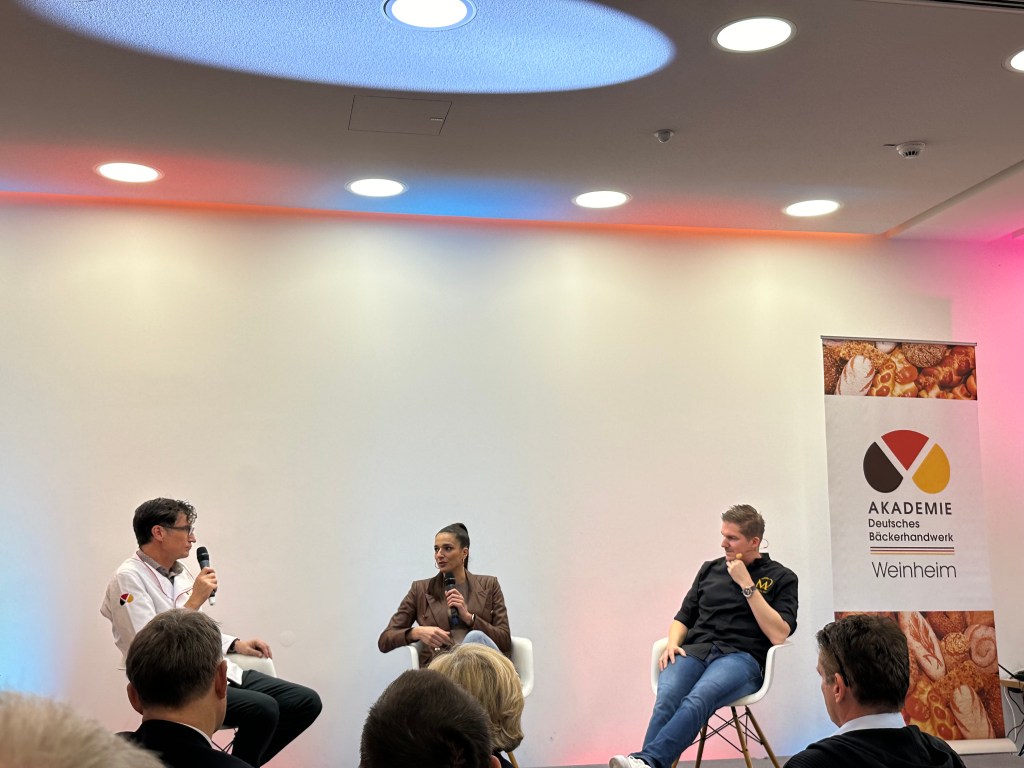 Anschließend ergänzte die „Bäckerin des Jahres“, Brot-Sommelière Celestina Brandt aus Thüringen, die Talkrunde. Sie erklärte dabei nicht nur, wie sie ihre Bäckerei mit Innovationen und viel Herz führt, sondern hielt auch ein flammendes Plädoyer für mehr Frauen im Ehrenamt des Bäckerhandwerks.